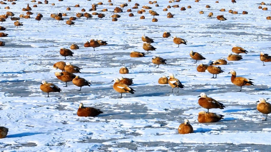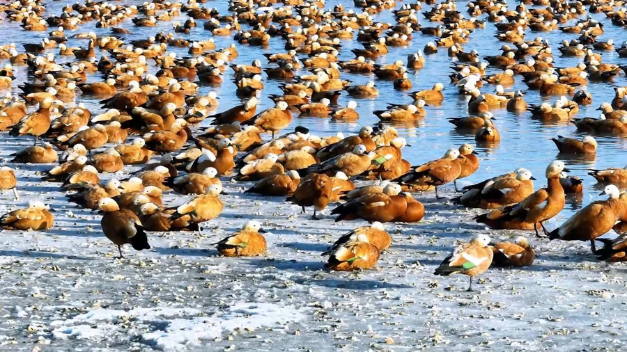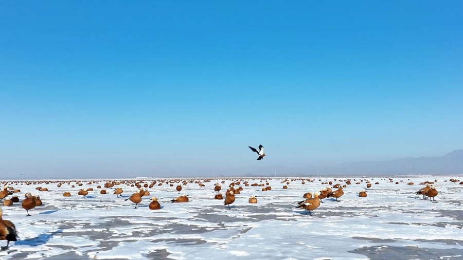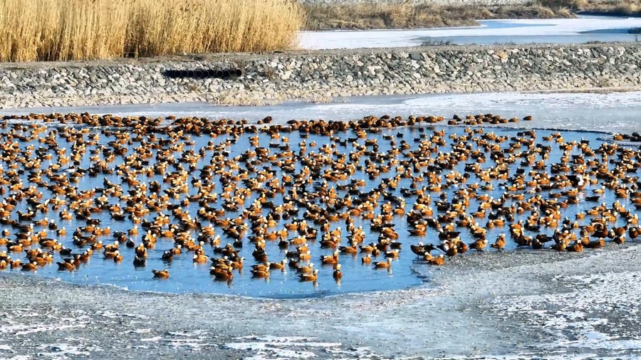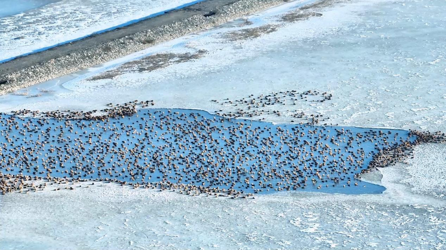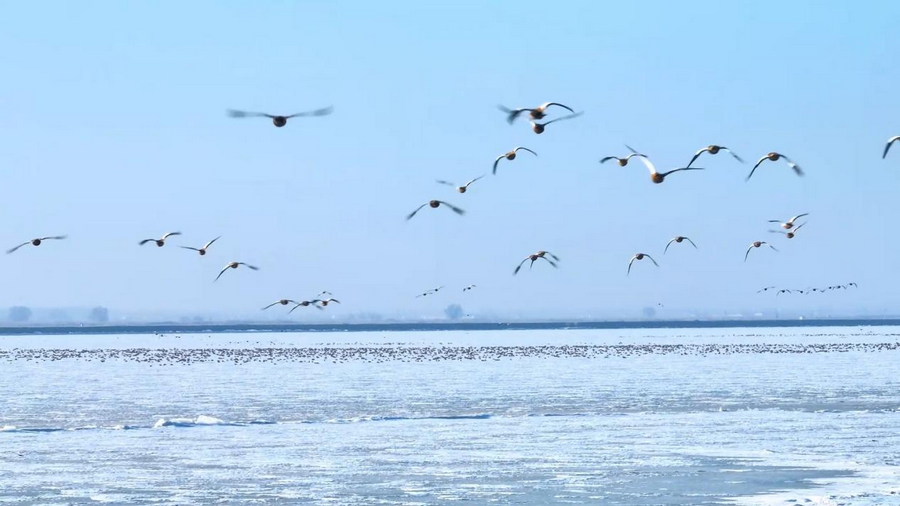隨著天氣轉(zhuǎn)暖,冰雪消融,土默特左旗的海流水庫(kù)迎來了大批北歸的候鳥。它們或在水面上嬉戲覓食,或在空中自由翱翔,為初春封凍的水庫(kù)增添了一抹靈動(dòng)的色彩。