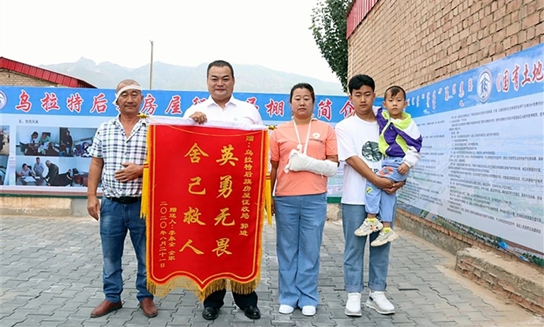 “太謝謝你了,你是我們一家四口的救命恩人,我們一輩子都會(huì)感激你?!毖壑酗柡瑹釡I的李永全緊緊握著郭進(jìn)的手說(shuō)。8月21日一大早,李永全一家就趕到了郭進(jìn)的工作單位后旗房屋征收局,將一面寫有“英勇無(wú)畏舍己救人”的錦旗,送到了恩人郭進(jìn)的手中。