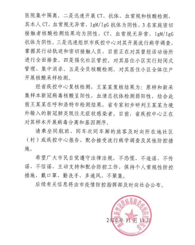 2020年11月12日 00:23 來源:呼市新冠疫情防控指揮部 關(guān)燈