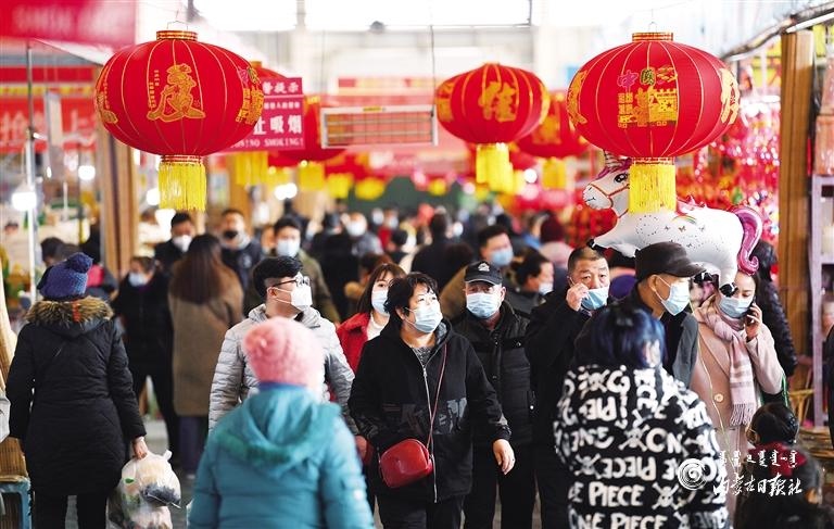 2月7日,呼和浩特市民在保全莊農(nóng)貿(mào)市場購買年貨。春節(jié)日益臨近,首府超市、市場內(nèi)各類年貨琳瑯滿目,前往采購年貨的市民絡(luò)繹不絕,年貨銷售迎來高峰。據(jù)了解,呼和浩特市肉蛋果蔬、米面糧油等生活必需品貨源充足、品種豐富,滿足廣大市民的消費(fèi)需求。內(nèi)蒙古日報社融媒體記者 孟和朝魯 攝