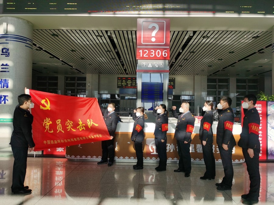 1月17日,春運(yùn)首日,集寧站烏蘭察布站組織黨員突擊隊(duì)開展宣誓活動(dòng)。