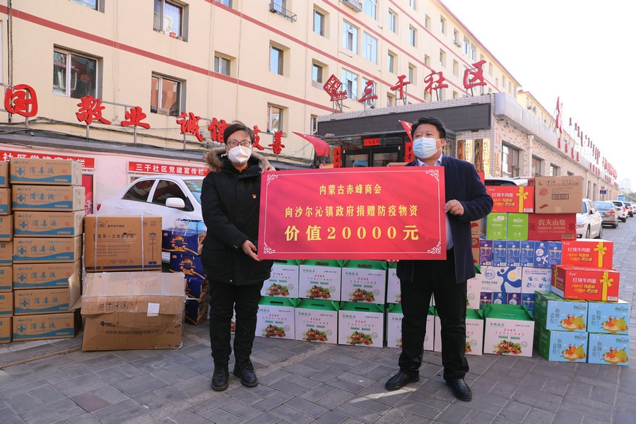 北疆新聞網(wǎng)、北疆新聞APP、北疆云消息(記者 張楊)2月26日下午,由呼和浩特市政協(xié)、呼和浩特市政協(xié)文化文史和學(xué)習(xí)委員會倡議,內(nèi)蒙古赤峰商會發(fā)起的抗疫物資捐贈,在呼和浩特市賽罕區(qū)烏蘭察布街道辦事處三干社區(qū)舉行。內(nèi)蒙古赤峰商會攜會員企業(yè),向呼和浩特市賽罕區(qū)金隅社區(qū)、錦泰榕城社區(qū)、三干社區(qū)和沙爾沁鎮(zhèn)政府捐贈了價值10萬元的抗疫急需物資,助力呼和浩特市一線抗疫。