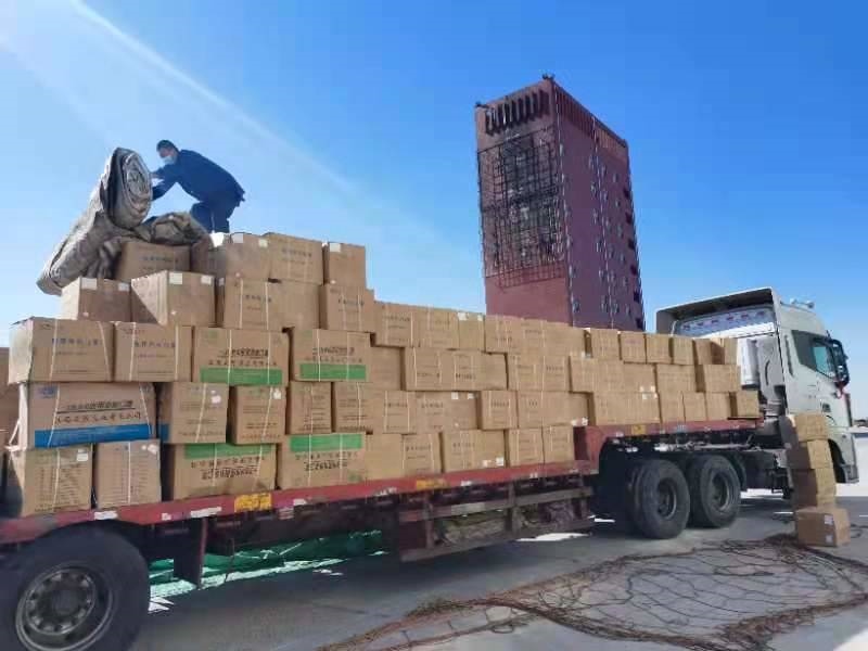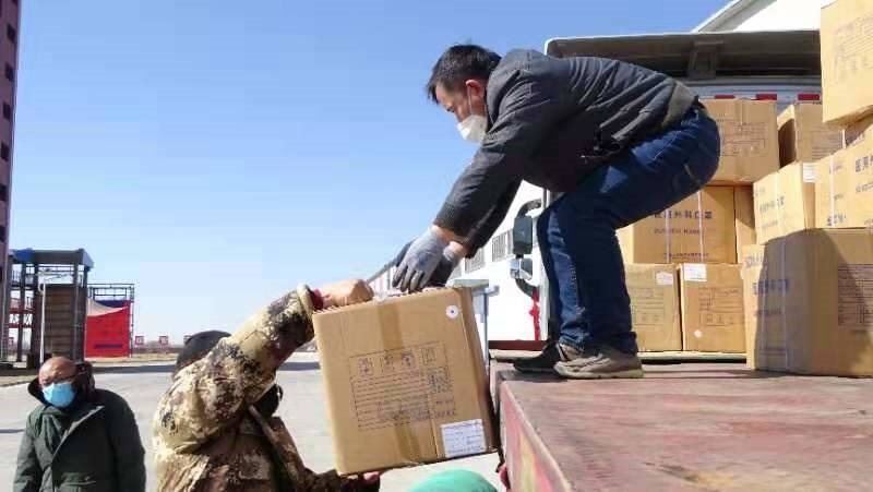 3月1日清晨,錫林郭勒盟至呼和浩特的后山地區(qū)飄著小雪,氣溫在零下10度以下,但是,風(fēng)雪擋不住來(lái)自錫林郭勒大草原的一片片愛(ài)。一輛17米帶掛卡車長(zhǎng)驅(qū)千里十多小時(shí),帶著錫林郭勒大草原的問(wèn)候,連夜運(yùn)輸?shù)胶艉秃铺兀粸樵琰c(diǎn)送達(dá)100萬(wàn)只一次性醫(yī)用外科口罩。這輛卡車上掛著內(nèi)容為“祝青城人民早日戰(zhàn)勝疫情,錫盟公益助力呼和浩特市”和“洶洶疫情不可怕,齊心協(xié)力戰(zhàn)勝它”的條幅,表達(dá)“中國(guó)馬都”向“中國(guó)乳都”的真切問(wèn)候。