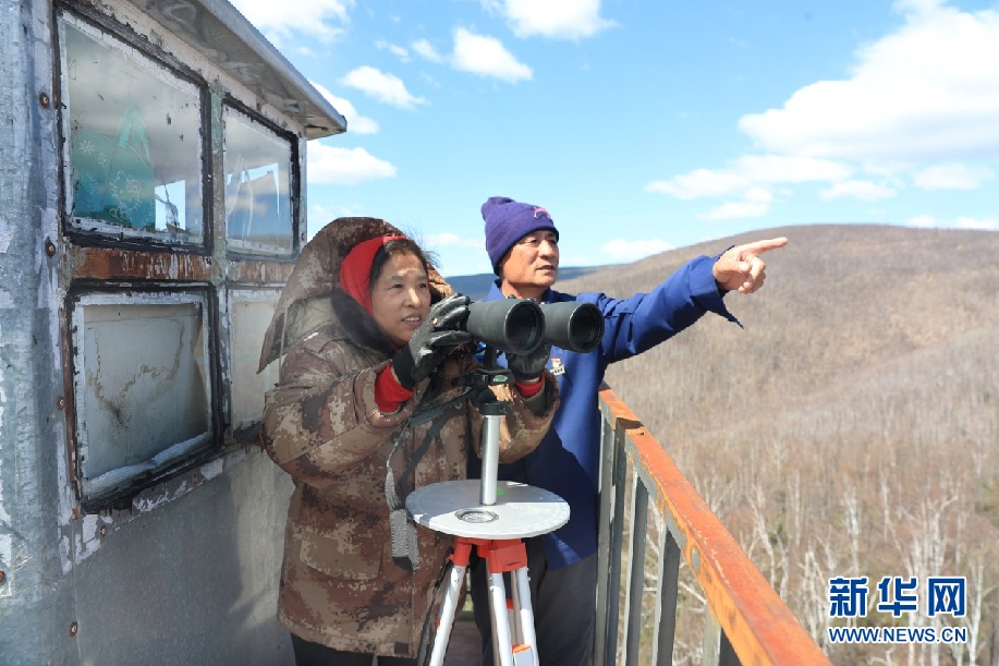 晉顏龍夫婦每天登上瞭望塔,觀察有無(wú)火情發(fā)生。新華網(wǎng)發(fā)(欒維敬 攝)