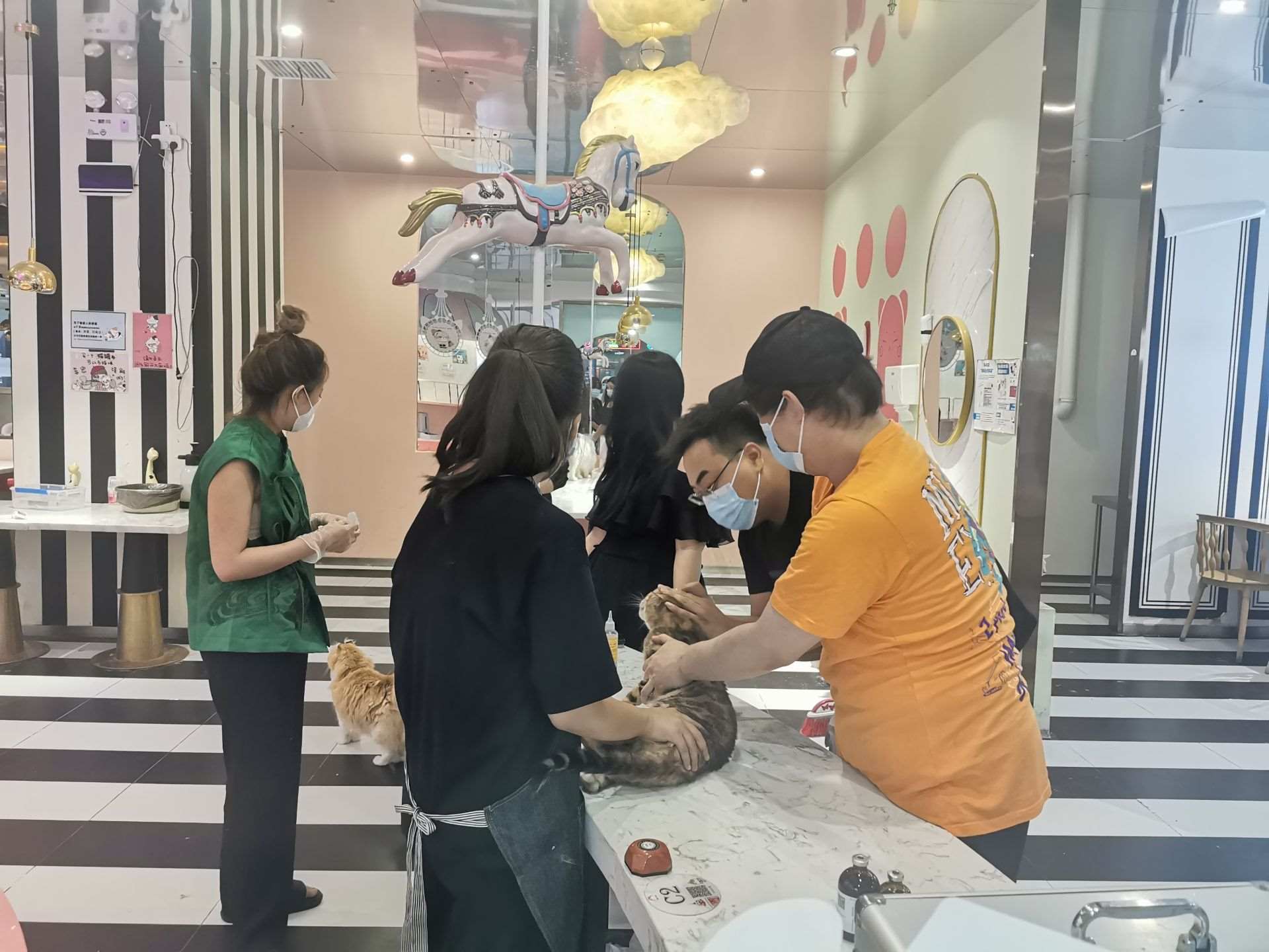 7月4日下午,記者來到店內,只見店內供電已恢復,屋內窗明幾凈,完全無異味,室內環(huán)境大為改觀,志愿者團隊們在店內忙碌打掃,對貓咪們進行體檢、滴藥、梳毛,現(xiàn)場井然有序,貓咪的狀態(tài)明顯活躍很多。