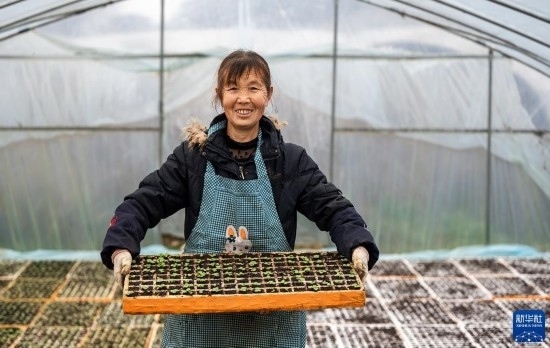 2月17日,村民在貴州省六盤(pán)水市六枝特區(qū)木崗鎮(zhèn)戛隴塘村育苗。