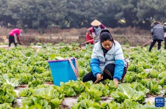 2月17日,農(nóng)戶在貴州省六盤(pán)水市六枝特區(qū)木崗鎮(zhèn)木崗沖村采收白菜。