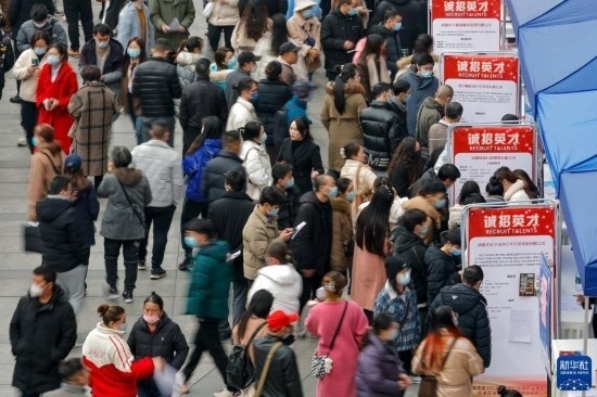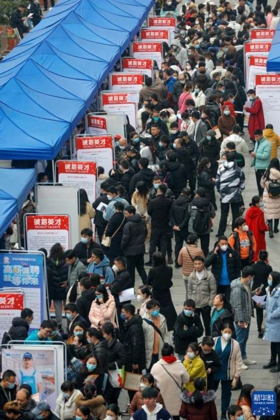 2月17日,人們在中國成都人力資源服務產業(yè)園查看招聘信息,尋找工作機會。