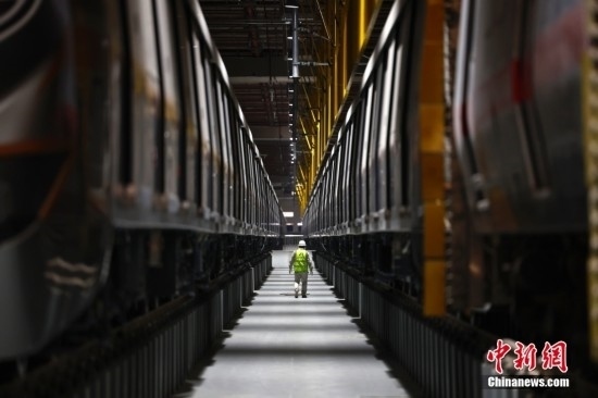 2月20日,工作人員在北京地鐵12號(hào)線東壩車輛段巡查列車。北京地鐵12號(hào)線正線全長(zhǎng)為29.6km,西起西四環(huán)四季青橋南,東至東壩北街,途經(jīng)海淀、西城、東城、朝陽(yáng)四個(gè)行政區(qū),全線共設(shè)21座車站,其中換乘站15座,全線建成通車后,將與4號(hào)線、5號(hào)線、8號(hào)線等12條線路實(shí)現(xiàn)換乘。當(dāng)前12號(hào)線車輛陸續(xù)進(jìn)場(chǎng),工程正在加速推進(jìn)。中新社記者 富田 攝