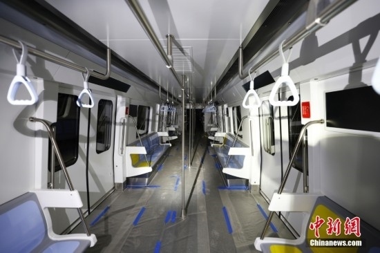 2月20日,在東壩車輛段內(nèi)停放的北京地鐵12號(hào)線列車車廂內(nèi)景。北京地鐵12號(hào)線正線全長(zhǎng)為29.6km,西起西四環(huán)四季青橋南,東至東壩北街,途經(jīng)海淀、西城、東城、朝陽(yáng)四個(gè)行政區(qū),全線共設(shè)21座車站,其中換乘站15座,全線建成通車后,將與4號(hào)線、5號(hào)線、8號(hào)線等12條線路實(shí)現(xiàn)換乘。當(dāng)前12號(hào)線車輛陸續(xù)進(jìn)場(chǎng),工程正在加速推進(jìn)。中新社記者 富田 攝