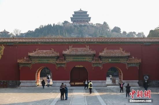 北京景山公園,市民參觀壽皇殿建筑群。中新社記者 易海菲 攝