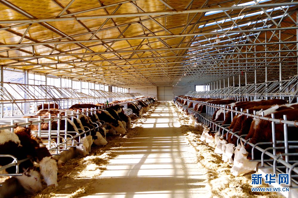 王喜良家的標準化牛棚暖意濃濃,膘肥體壯的肉牛正在吃草。新華網(wǎng)發(fā)(王呼斯冷 攝)