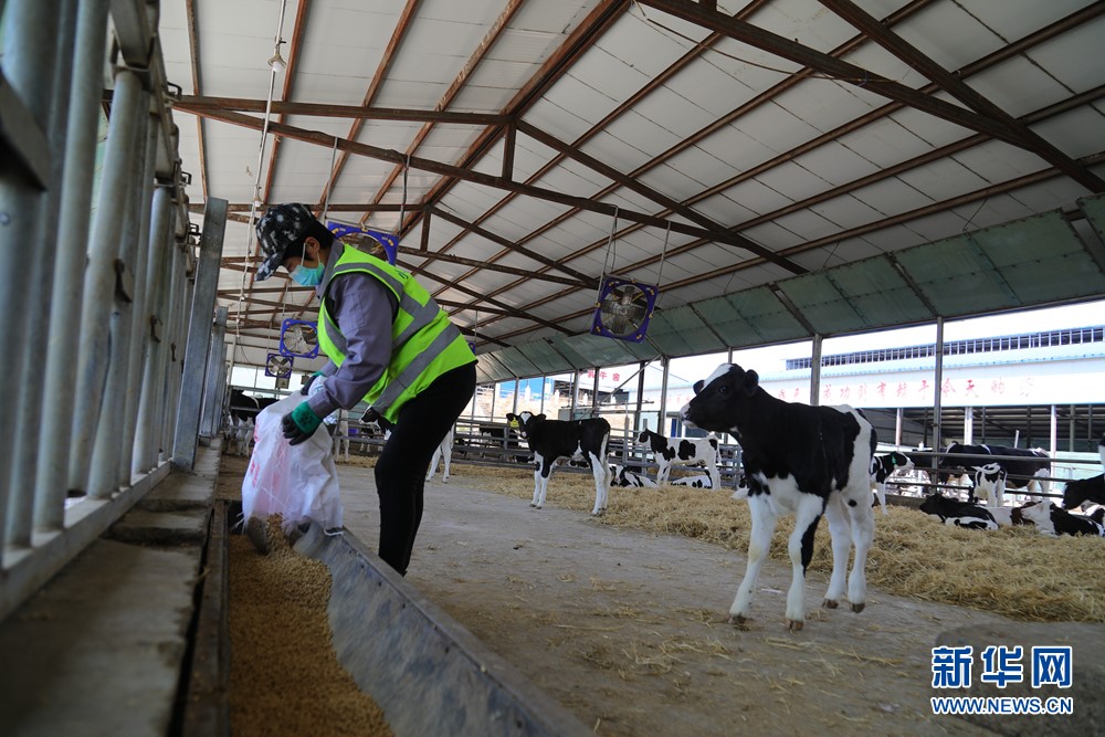 小黑山奶牛養(yǎng)殖專業(yè)合作社的工人在牛棚里給牛添加飼料。新華網(wǎng)發(fā)(白敖敏 攝)