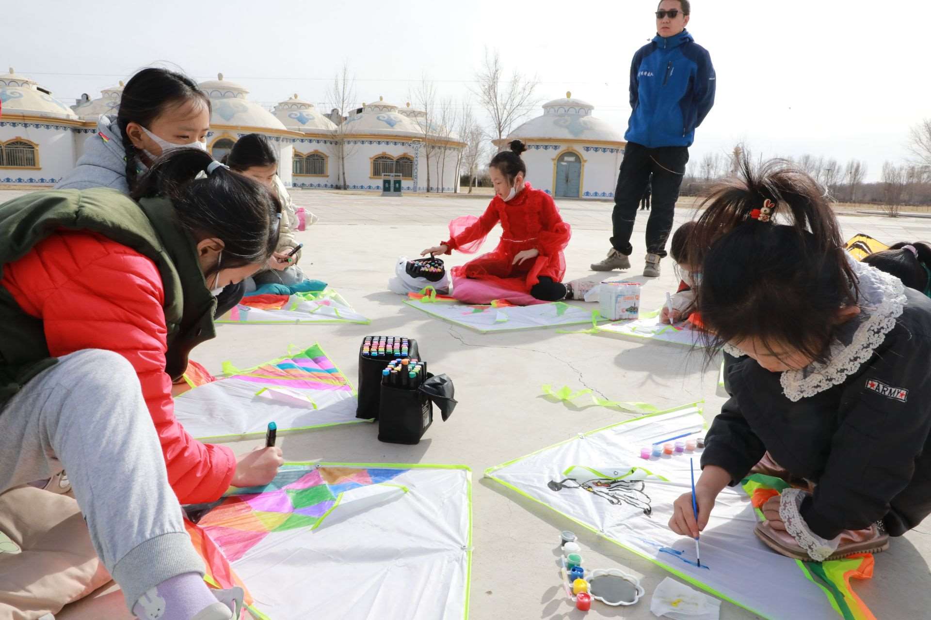 活動(dòng)現(xiàn)場(chǎng),呼和浩特市風(fēng)箏協(xié)會(huì)還特地準(zhǔn)備了20個(gè)空白風(fēng)箏,讓孩子們充分發(fā)揮想象力,動(dòng)手繪制自己喜歡的圖案。沐浴著溫暖的春光,小記者們拿出事先準(zhǔn)備好的水彩筆或者顏料,或趴或坐,認(rèn)真構(gòu)思,有的在風(fēng)箏上畫上了粉色的郁金香,有的畫上了振翅飛舞的蝴蝶,有的畫上了美麗的白雪公主,還有的涂鴉上喜歡的色塊,他們用五彩斑斕的顏色點(diǎn)綴創(chuàng)意,裝點(diǎn)自己喜歡的風(fēng)箏。一個(gè)小時(shí)的功夫,一個(gè)個(gè)獨(dú)具創(chuàng)意的風(fēng)箏在小記者們的巧手繪制中完成了。在郝偉老師的指導(dǎo)下,小記者們把風(fēng)箏安裝好,接上線,舉行了一場(chǎng)小型風(fēng)箏比賽?!巴?,成功了,起飛了!”只見(jiàn)數(shù)十只色彩各異的風(fēng)箏隨風(fēng)飛上天空,你爭(zhēng)我趕,越飛越高,小記者們?nèi)滩蛔“l(fā)出歡呼聲,臉上洋溢著開(kāi)心地笑容。
