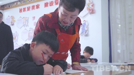 “這一筆要拉長(zhǎng),再拉長(zhǎng),對(duì)不對(duì)!”操著一口四川話的張惠英老人一邊把著孩子的手寫(xiě)字,一邊微笑耐心地講解。在吉福社區(qū)的一間教室里,十來(lái)個(gè)孩子正在認(rèn)真地練寫(xiě)漢字筆畫(huà),而教他們書(shū)寫(xiě)的張惠英并不是真正的教師,而是孩子們的“共享奶奶”。