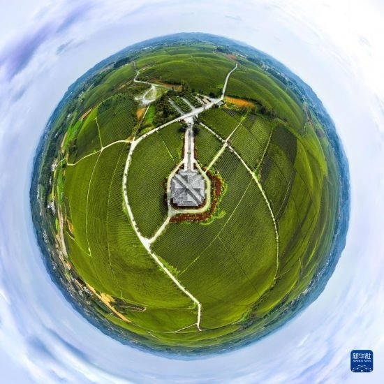 4月4日拍攝的遵義市湄潭縣永興鎮(zhèn)“萬畝茶海”(無人機全景拼接照片)。