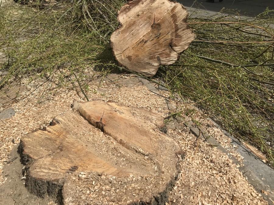新華融媒、北疆新聞網、北疆新聞App消息(記者 張楊)4月15日下午,記者接到呼和浩特新城區(qū)氣象局西路興松小區(qū)的居民投訴,稱當天上午9:00—11:00,在小區(qū)物業(yè)的配合下,小區(qū)院內25棵柳樹被不明身份的施工人員齊根砍伐。