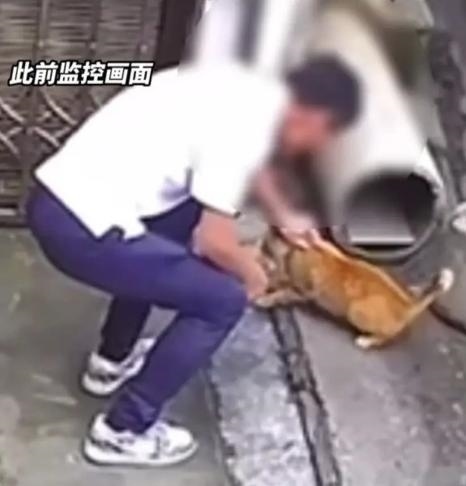 ·男子用刀殘忍割斷貓尾,已被警方抓獲指認(rèn)現(xiàn)場(chǎng)。