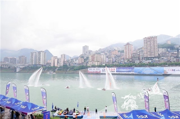 △水上飛人表演贏得現(xiàn)場陣陣歡呼。華龍網(wǎng)-新重慶客戶端 黃歡 攝