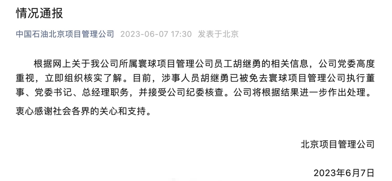 ·國(guó)企領(lǐng)導(dǎo)與異性親密牽手逛街被拍,中石油下屬公司回應(yīng):已免職。