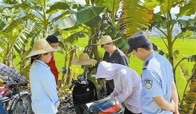 烈日當(dāng)空,在暑氣熏蒸的稻田里,干警敬業(yè)、負責(zé)的工作態(tài)度讓當(dāng)事人深感佩服,“法官量的是多少就是多少,超出了的我就還給她?!笨匆姳桓鎽B(tài)度有所緩和,藍偉華覺得調(diào)解有了可能性,決定到村委會繼續(xù)做調(diào)解工作。