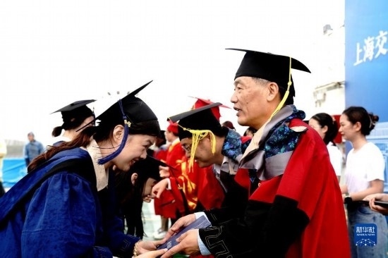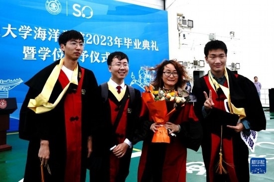 當(dāng)日,上海交通大學(xué)海洋學(xué)院2023年畢業(yè)典禮暨學(xué)位授予儀式在“雪龍2”號(hào)上舉行,70余名畢業(yè)生在甲板上與師長(zhǎng)道別?!把?”號(hào)是我國(guó)自主建造的第一艘極地科學(xué)考察破冰船。