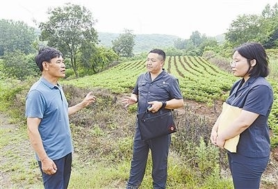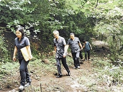 6月20日,安徽省明光市人民法院澗溪人民法庭法官頭頂炎炎烈日,穿越泥濘山道,徒步三公里,登上葛藤窩山,到一起環(huán)境污染責任糾紛案的現(xiàn)場查看樹木受損情況。