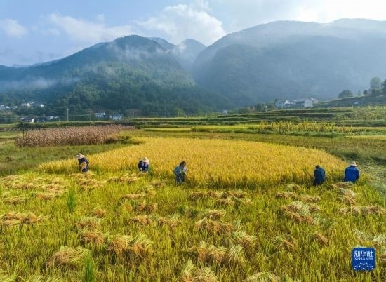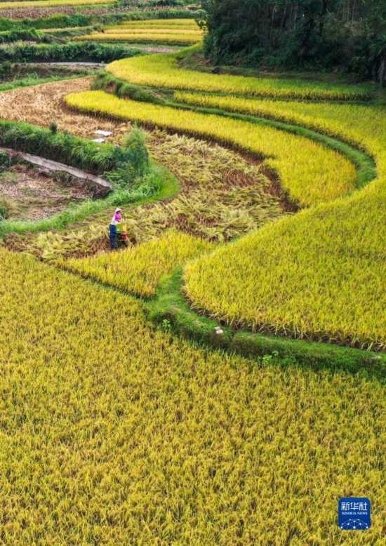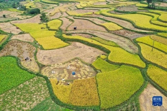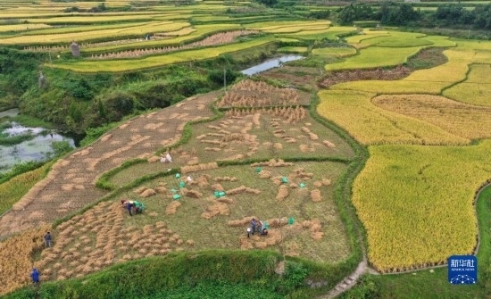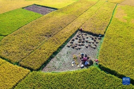 金秋時節(jié),各地農(nóng)民搶抓晴好天氣忙收獲,田間地頭一派繁忙景象。新華社發(fā)(胡攀學(xué) 攝)