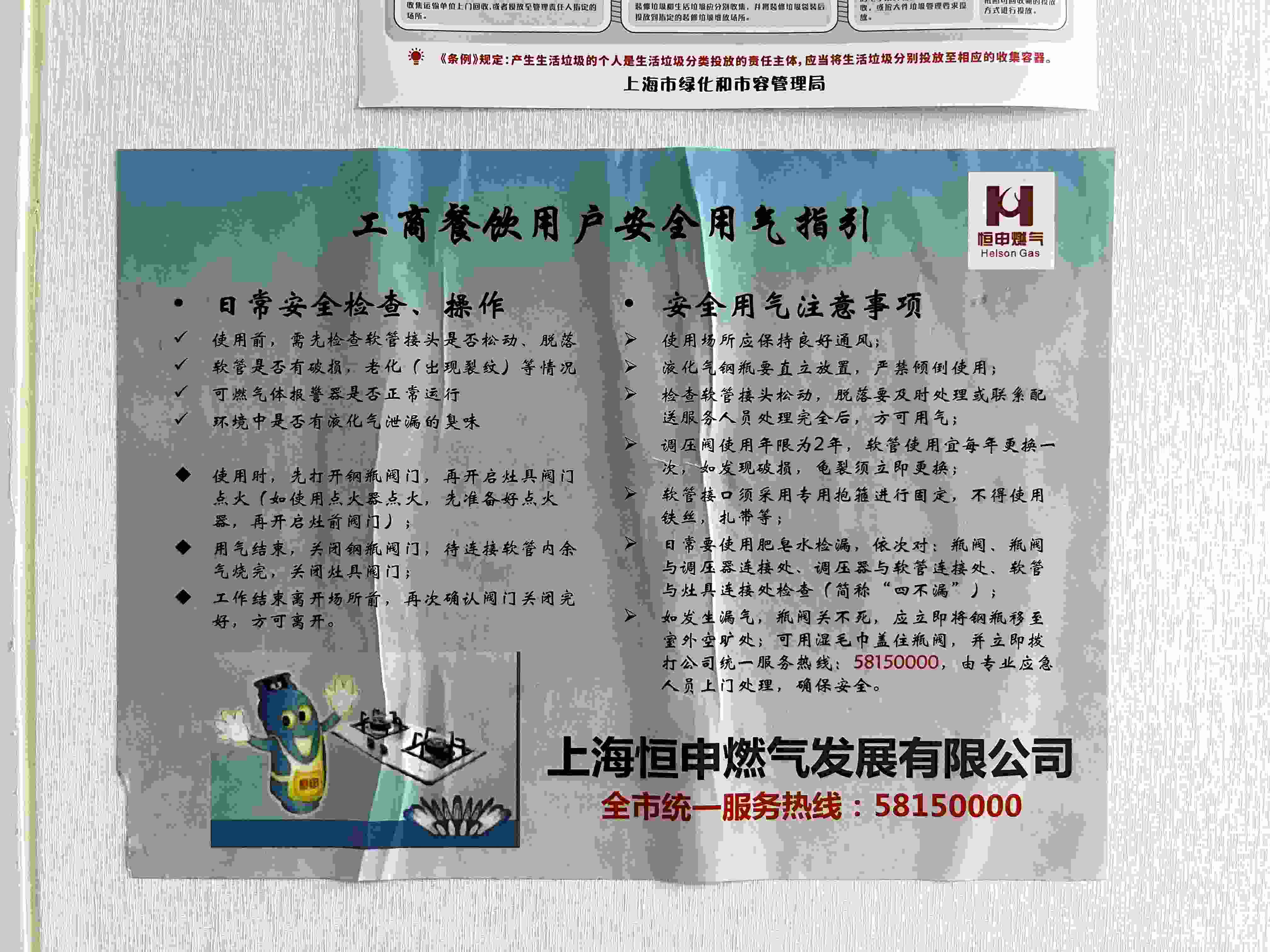 燃氣公司在商鋪內(nèi)張貼的安全用氣指引