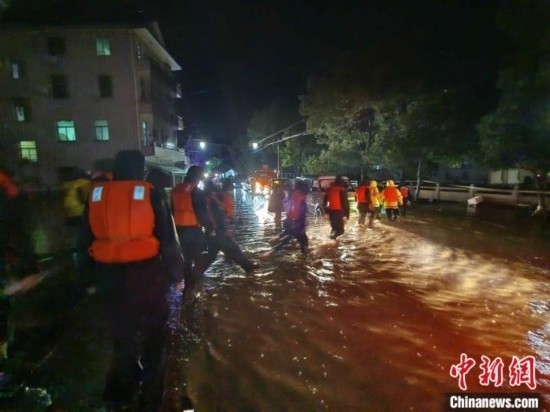 如在富陽區(qū)大源鎮(zhèn)青山村,暴雨引發(fā)的洪水流過村莊道路,水勢湍急,村內(nèi)也出現(xiàn)停電情況,一些村民只能待在家中二樓,當(dāng)?shù)卣e極開展救援、轉(zhuǎn)移工作。富陽常綠鎮(zhèn)也出現(xiàn)人員受困情況,當(dāng)?shù)氐谝粫r間轉(zhuǎn)移受困人員的同時,安排多臺挖掘機、鏟車不間斷運轉(zhuǎn)全力開展排水溝渠疏通、砂石淤泥清除等作業(yè)。在當(dāng)?shù)佚堥T鎮(zhèn),5名游客因為突然降雨無法下山,后在消防隊的幫助下被安全送至山下。
