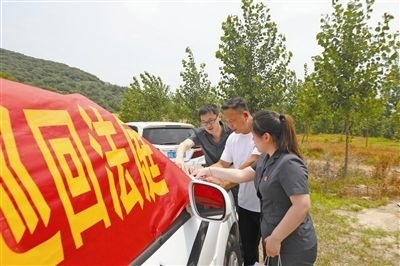 “現(xiàn)在開庭!”隨著審判長(zhǎng)的一聲令下,這場(chǎng)以青山為背景、警車為審判臺(tái)、黃土地為審判場(chǎng)的“別樣”庭審正式落槌!近日,山東省莒南縣人民法院環(huán)境資源審判庭的法官冒著酷暑來到坊前鎮(zhèn)李家崖村,對(duì)被告人李某非法占用農(nóng)用地刑事附帶民事公益訴訟案件進(jìn)行開庭宣判,并現(xiàn)場(chǎng)監(jiān)督被告人對(duì)破壞的土地進(jìn)行徹底修復(fù)。
