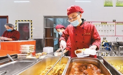 8月1日,在天津市武清區(qū)職業(yè)教育中心臨時安置點,工作人員為永定河泛區(qū)轉移人員準備午飯。新華社記者 孫凡越攝