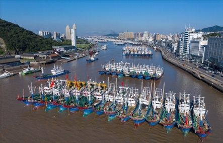 8月6日,停泊在舟山普陀沈家門漁港的漁船即將出港。專項特許捕撈漁船結(jié)束休漁,于6日開赴東海海域,進(jìn)行捕撈作業(yè)。