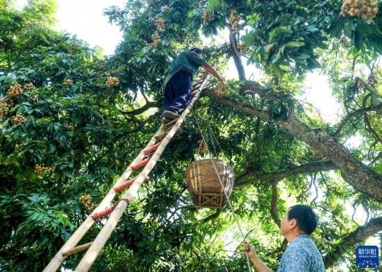 8月23日,四川省瀘州市江陽(yáng)區(qū)黃艤鎮(zhèn)羅灣村村民在采摘桂圓。