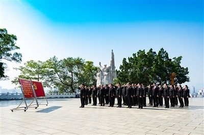 “我志愿加入中國共產(chǎn)黨,擁護黨的綱領,遵守黨的章程……”今年7月,百色市中級人民法院黨員到百色起義革命烈士紀念碑廣場開展黨日活動,緬懷革命先烈,重溫入黨誓詞。鏗鏘的誓詞,久久回蕩在紀念碑上空,銘刻在每一個人的心頭。