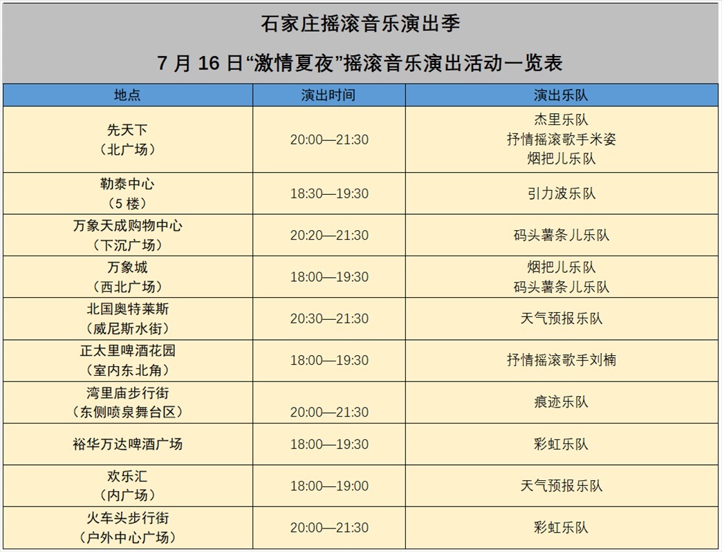 當(dāng)?shù)孛襟w早前報道稱,9月16日至24日,由河北省商務(wù)廳、石家莊市人民政府聯(lián)合主辦的河北·澳門美食音樂消費(fèi)節(jié)暨河北金秋消費(fèi)季活動在石家莊舉辦?;顒庸舶厣朗彻?jié)、音樂休閑節(jié)、激情購物節(jié)三個板塊。其中,音樂休閑節(jié)于每天18時30分至22時30分在石家莊正太廣場舉辦。十余位歌手、6支樂隊帶來精彩的音樂演出,豐富市民游客文化體驗,演出曲目風(fēng)格包含搖滾、民謠、爵士、抒情等。