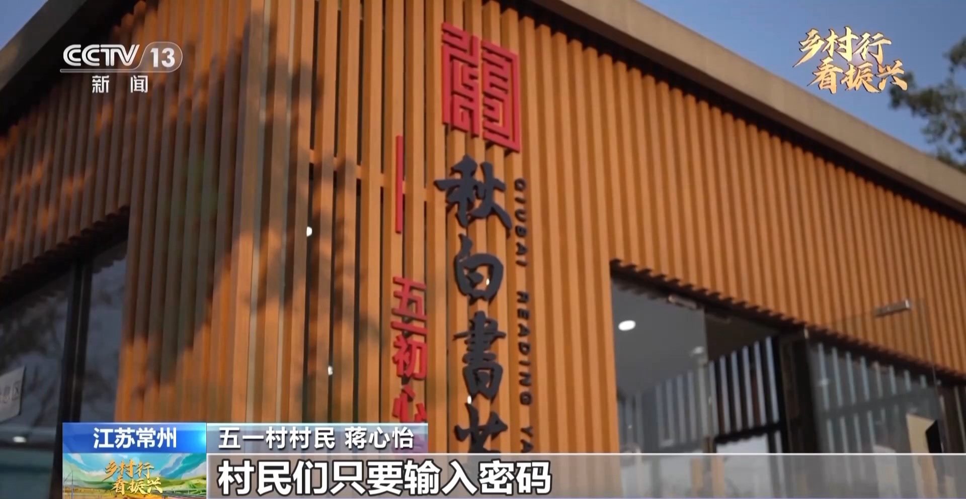 江蘇常州五一村村民 蔣心怡:我叫蔣心怡,是個(gè)土生土長(zhǎng)的五一村人。今天我想帶大家去看看我們村的秋白書苑。這個(gè)圖書館24小時(shí)免費(fèi)開放,村民們只要輸入密碼,就可自由進(jìn)出。