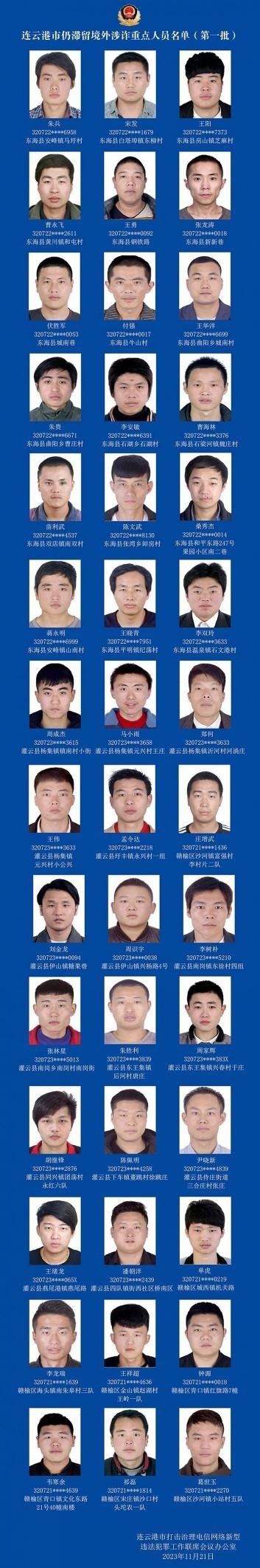 ·江蘇連云港警方發(fā)布首批42名非法滯留境外涉詐重點(diǎn)人員名單,要求滯留人員主動(dòng)于2023年12月20日前通過(guò)正規(guī)渠道入境回國(guó),并在入境前向戶籍地派出所報(bào)備。對(duì)于拒不回國(guó)投案自首的,司法機(jī)關(guān)將依法嚴(yán)懲。