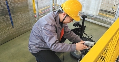 袁海亮在調試工業(yè)機器人系統(tǒng)。本報記者 李家鼎攝
