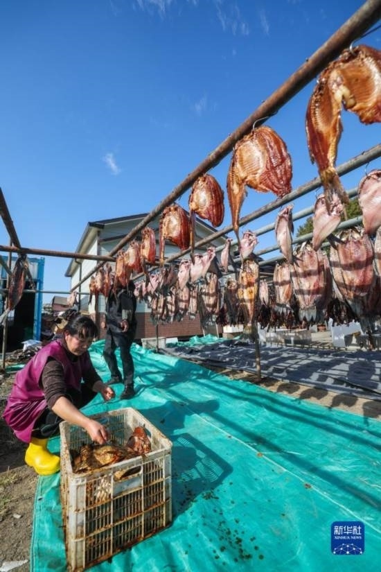 浙江省諸暨市白塔湖湖畔的村鎮(zhèn)居民有冬季曬魚干迎新年的傳統(tǒng)習俗。臨近年末,當地村民用捕撈的青魚、鳊魚、白條魚等晾曬魚干,迎接新年、增收創(chuàng)收。