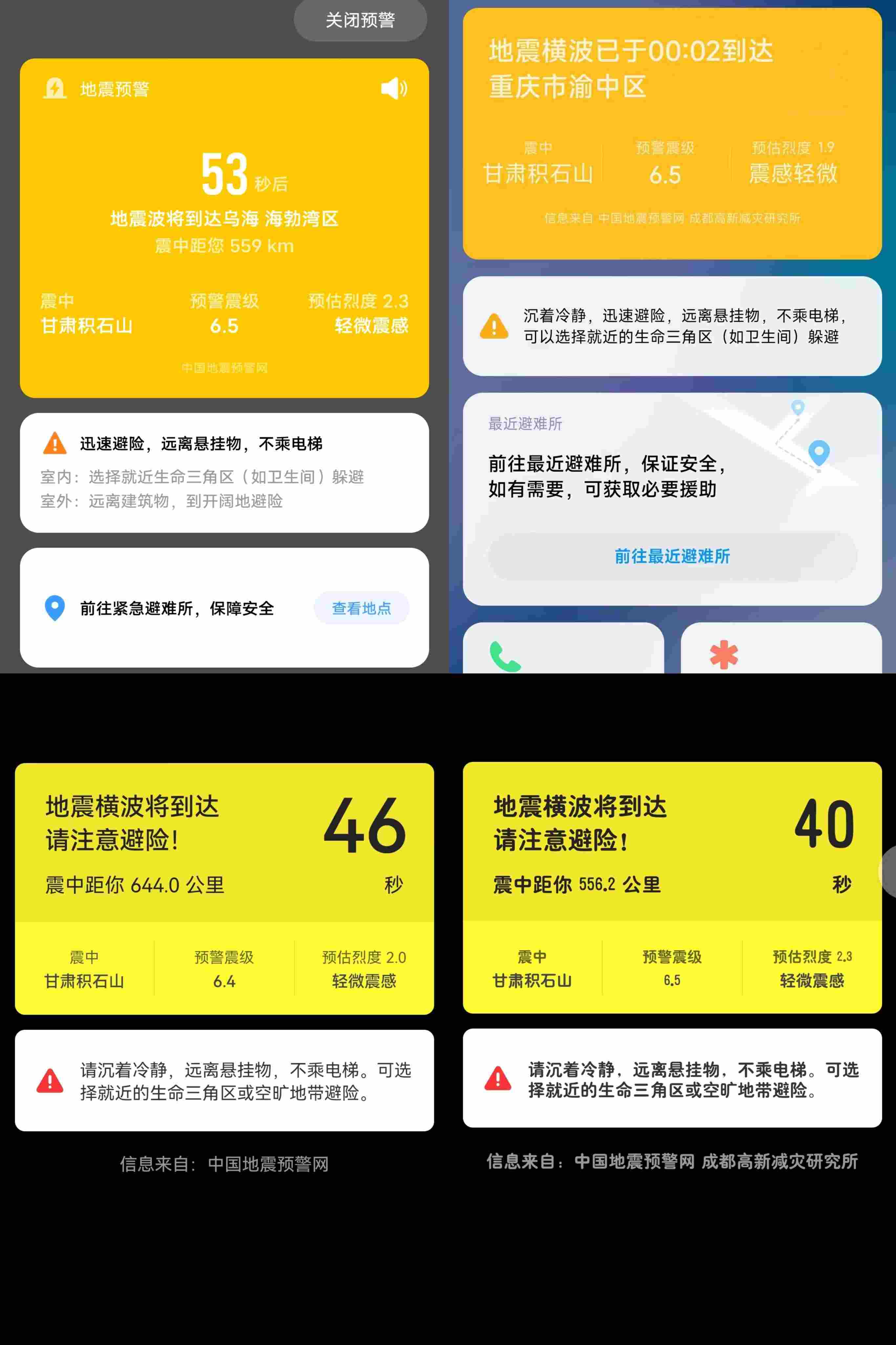 除甘肅地區(qū)外,很多周邊地區(qū)的居民也都及時收到了地震預(yù)警: