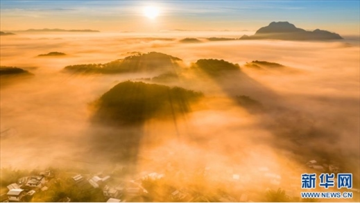冬日的清晨,云南省普洱市寧洱哈尼族彝族自治縣山間的村莊被云霧籠罩,日出云海,壯美如畫(huà)。