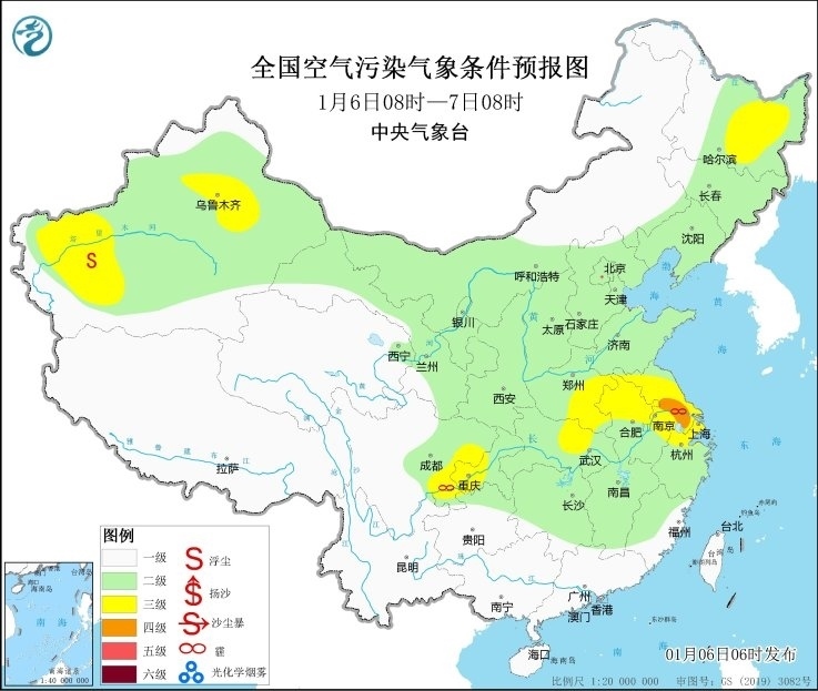 央視網(wǎng)消息:中央氣象臺(tái)6日6時(shí)繼續(xù)發(fā)布大霧黃色預(yù)警。此外,6日白天起,受冷空氣影響,黃淮南部、江淮北部等地的霾天氣逐漸減弱消散。