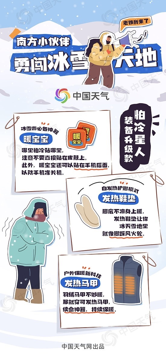 央視網(wǎng)消息:據(jù)中國(guó)天氣網(wǎng)訊,“哈爾濱凍梨都擺盤了”、“鄂倫春族驚現(xiàn)中央大街”、“爾濱,又整活兒了”……這個(gè)冬季,哈爾濱爆火出圈,成為新晉“頂流”,帶火了一眾冰雪旅游地。隨著寒假的到來,預(yù)計(jì)又有一大批來自各地的小土豆、小橘子、小辣椒將勇闖冰雪世界。但東北旅游真不是說走就能走的,-20℃甚至-30℃的氣溫分分鐘教你認(rèn)清現(xiàn)實(shí)。中國(guó)天氣網(wǎng)推出東北旅游防寒保暖攻略,一圖掌握冰雪游防凍保命穿搭。