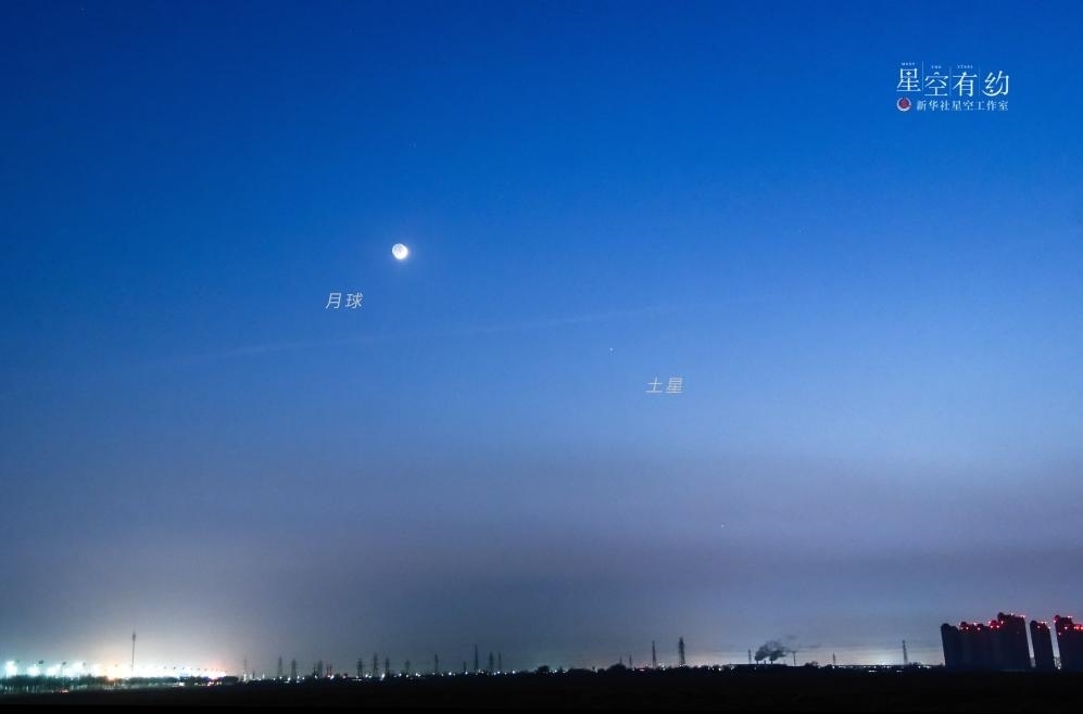 進入1月,土星在寶瓶座順行,日落時位于西南方天空,亮度約1等。14日天黑后,一輪農(nóng)歷臘月初四的蛾眉月會出現(xiàn)在西南方天空,如果天氣晴好,感興趣的公眾用肉眼會看到月亮上方不遠處有一個小光點,這個小光點就是土星。月亮的亮度不高,和不是特別明亮的土星比較匹配。