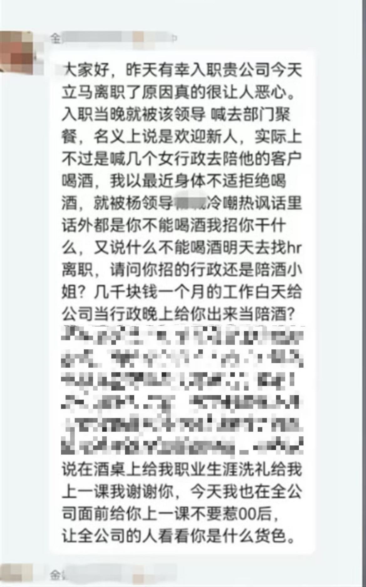 ·南京一00后女員工被要求陪客戶喝酒憤而辭職?涉事公司稱其捏造事實(shí),警方介入:正在調(diào)查處理。
