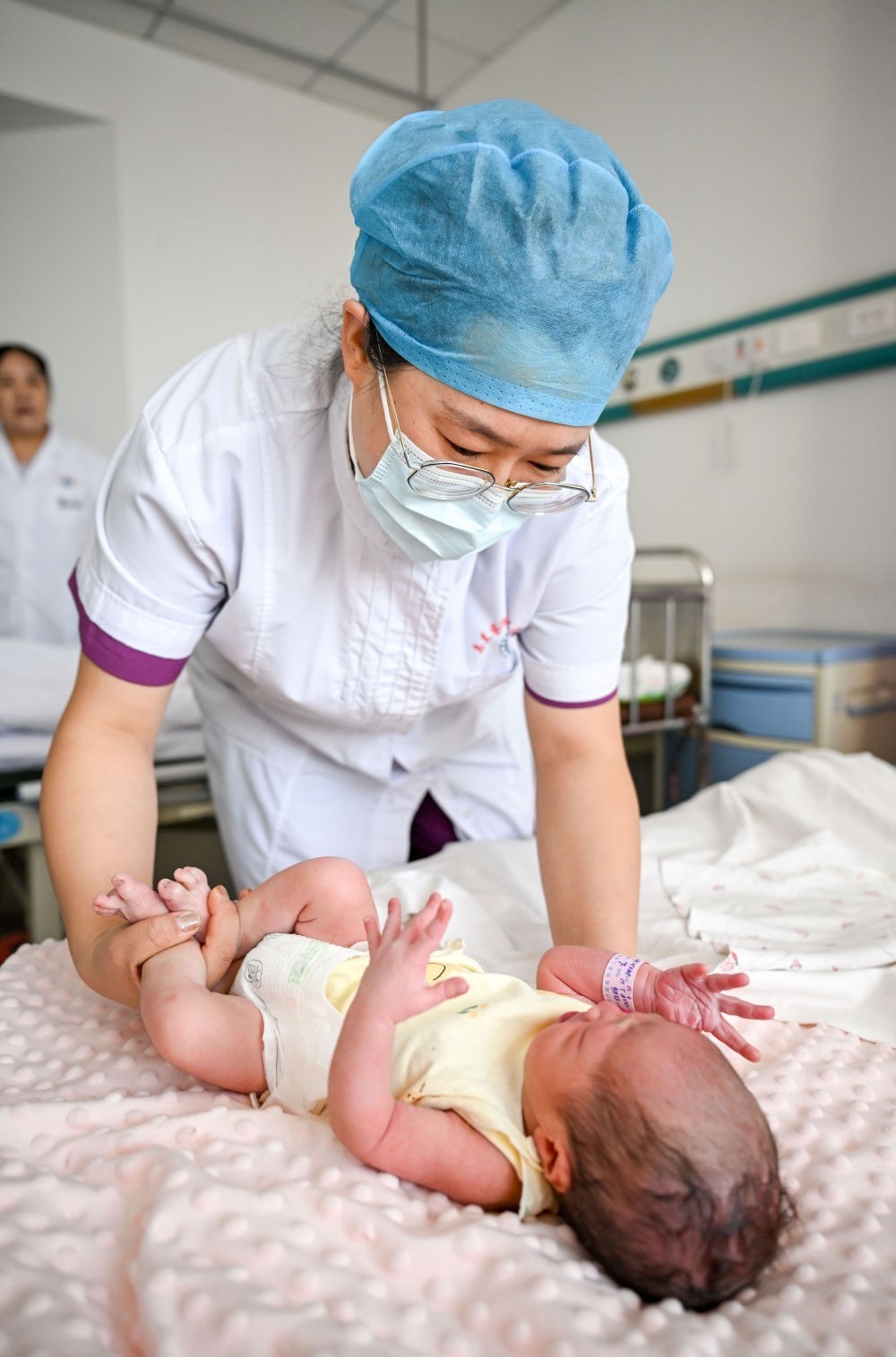 2月10日,在湖南省邵陽市隆回縣人民醫(yī)院,醫(yī)生在護理一名剛出生的“龍寶寶”。新華社發(fā)(范暉 攝)