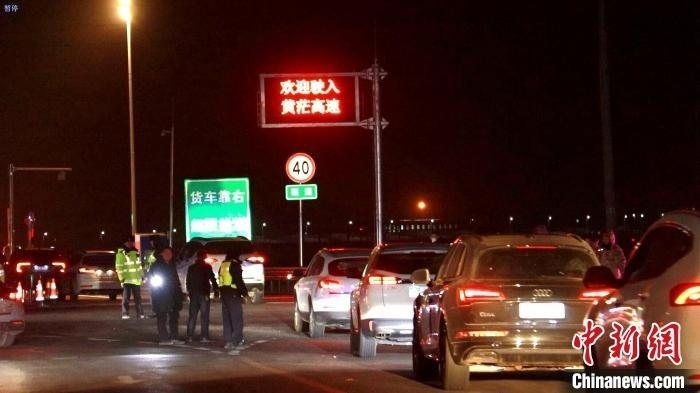 圖為茫崖交警對滯留車輛進行疏導。茫崖市融媒體中心供圖