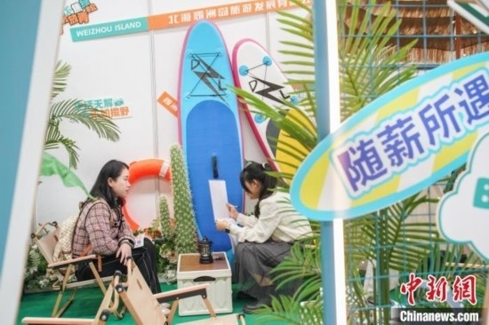 綠植、鮮花、槳板、布氏鯨、海島咖啡……廣西北海市潿洲島旅游區(qū)的招聘展臺呈現(xiàn)了一個微縮版的景區(qū)場景,當日吸引2100人現(xiàn)場面試。