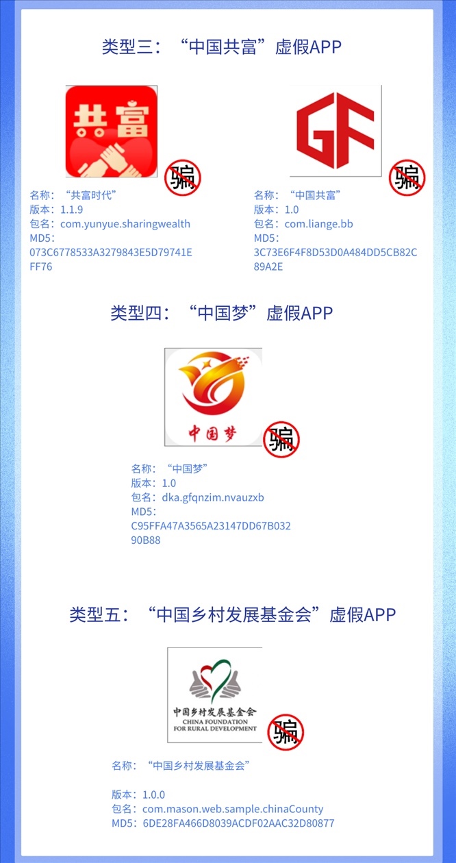 近期一些不法分子套用各類(lèi)官方公開(kāi)信息,打著“國(guó)家支持項(xiàng)目”“國(guó)家惠民政策”旗號(hào),制作出一大批App,在其中編造虛假投資理財(cái)項(xiàng)目,以高收益為誘餌,忽悠不明真相的群眾在App“投資”進(jìn)而實(shí)施詐騙。